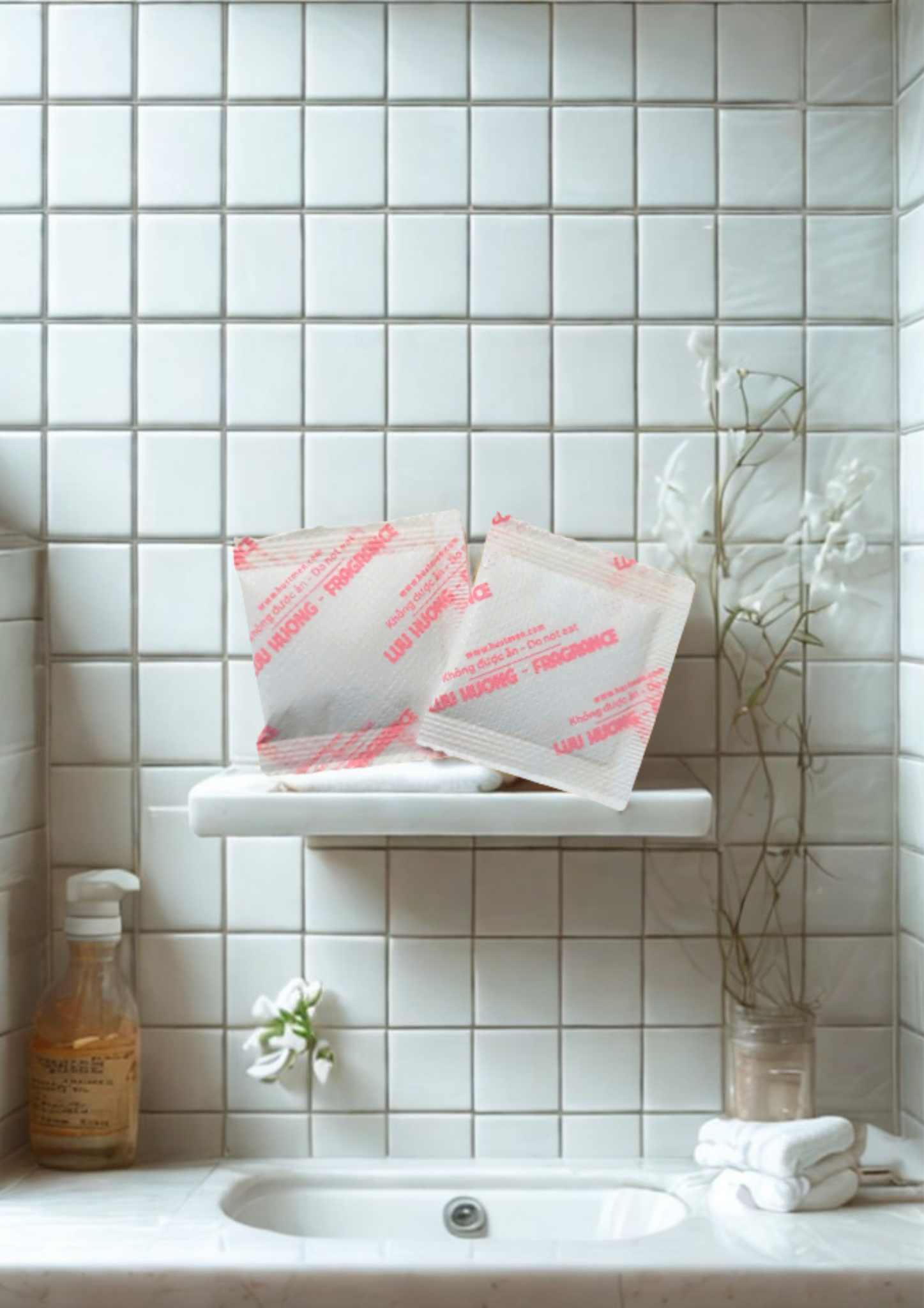 The product has 2 main smell: coffee and rose. Just place the package in the place that needs deodorizing and dehumidifying such as wardrobe, suitcase, shoe compartment, car... without needing power source or supporting equipment.